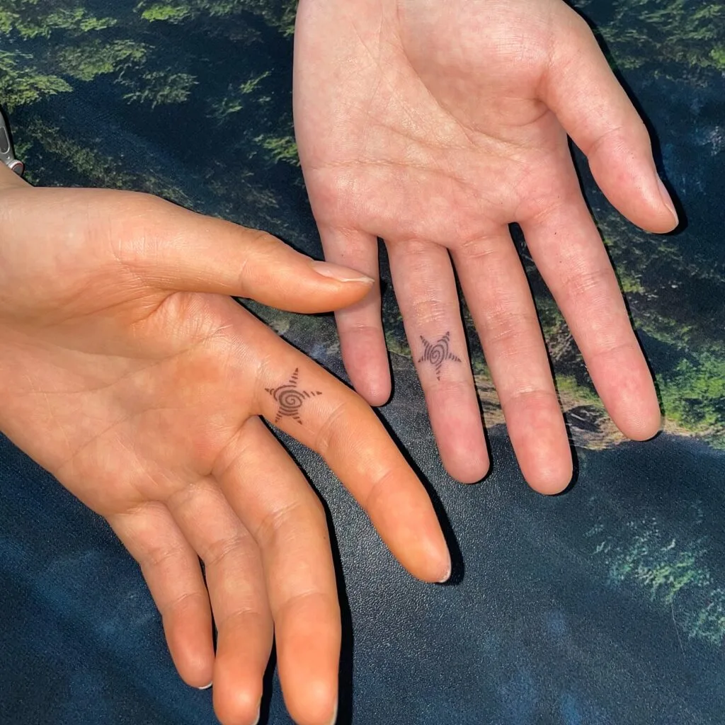 Matching Cosmic Star Finger Tattoos