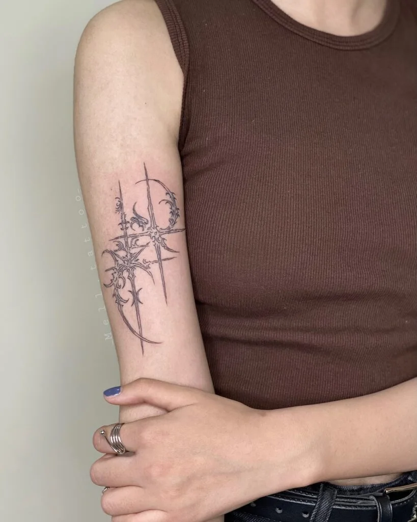 Placed on the upper arm, it feels like a timeless symbol of light, guidance, and personal strength. Perfect for someone who appreciates subtle, geometric designs with deep meaning, this starburst tattoo is a beautiful representation of clarity and brilliance that will never go out of style.