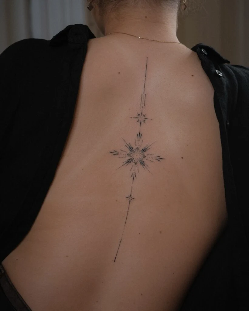 Celestial Spine Stick and Poke Tattoo
