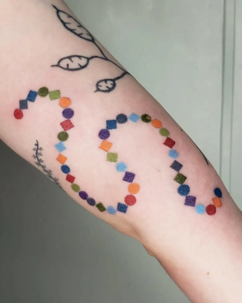 Colorful Geometric Snake Stick and Poke Tattoo