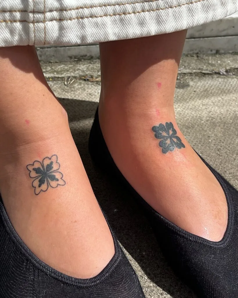 Matching Clover-Inspired Ankle Stick and Poke Tattoos