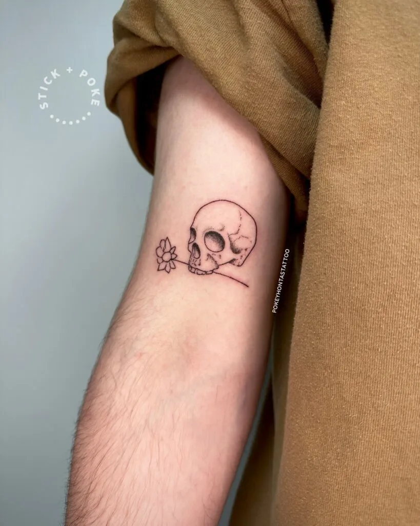 Skull with Flower Stick and Poke Tattoo