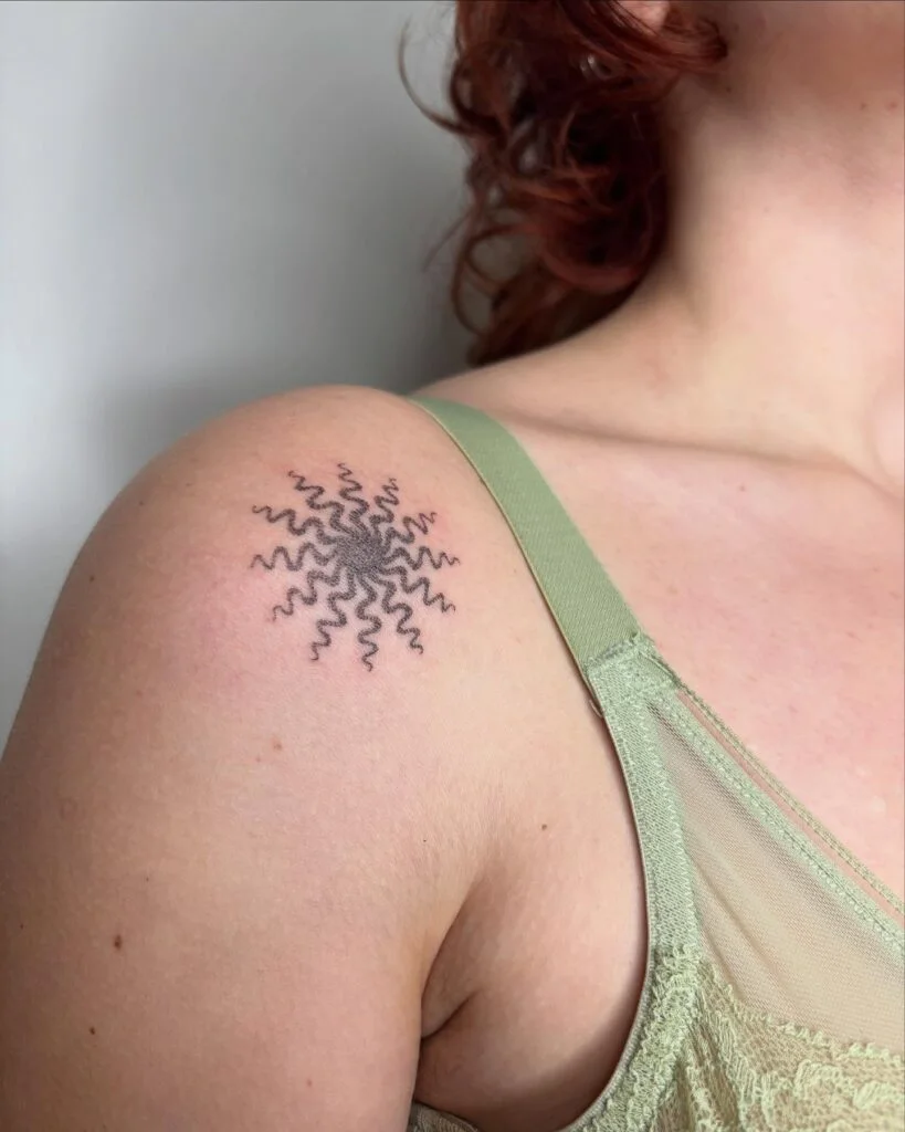 Wavy Starburst Shoulder Stick and Poke Tattoo