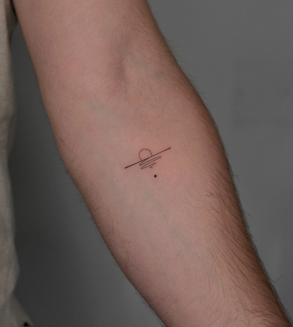 Minimalist Sunrise Line Tattoo on Arm