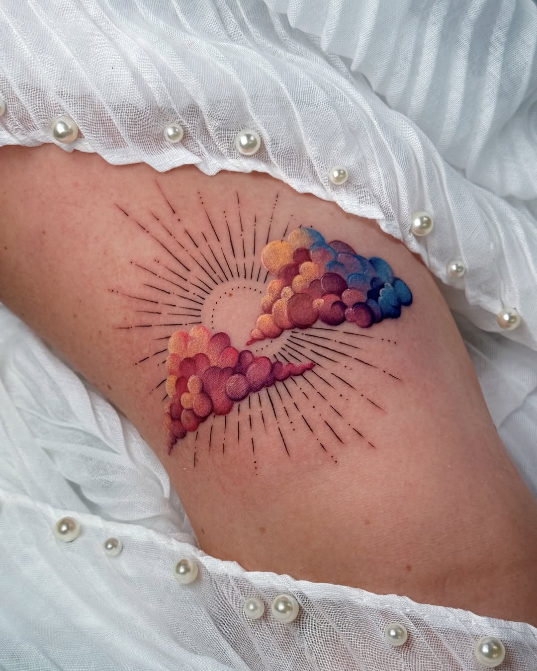 Colorful Sunrise Through Clouds Tattoo