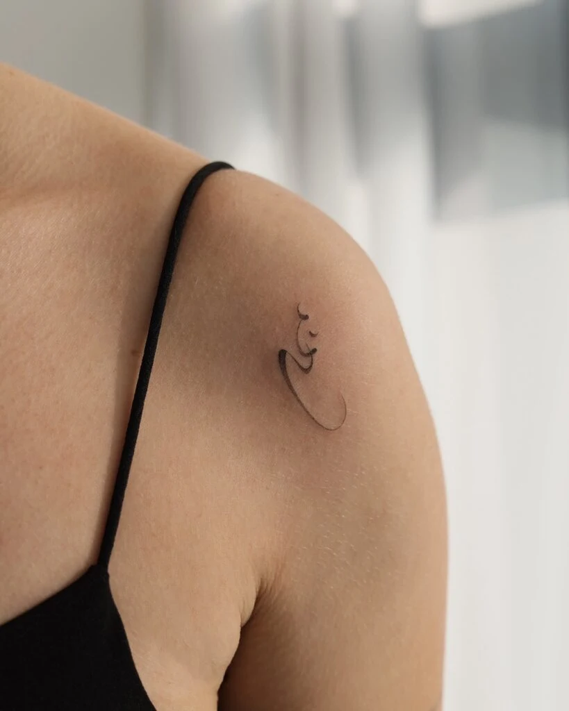 Placed delicately on the shoulder, this design serves as a quiet reminder to stay centered amidst life’s chaos. Its simplicity and symmetry make it both visually striking and deeply meaningful.