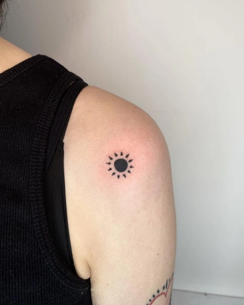 Minimalist Black Sun Shoulder Tattoo