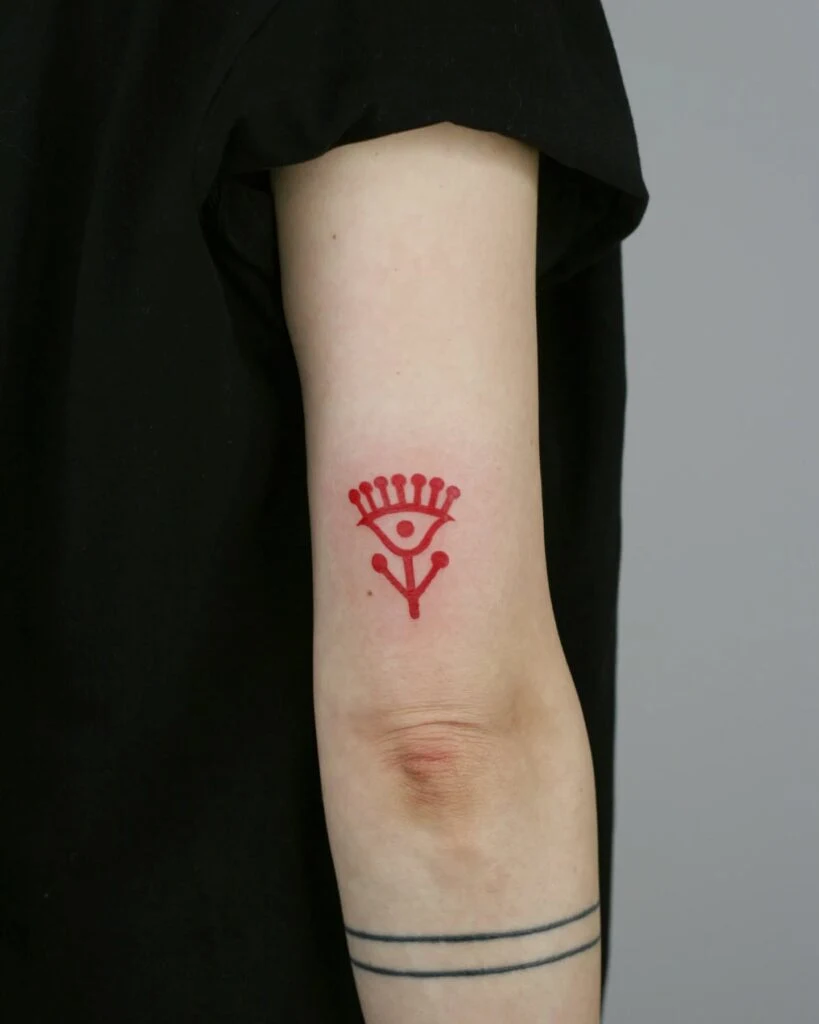 Red Ink Visionary Symbol Tattoo