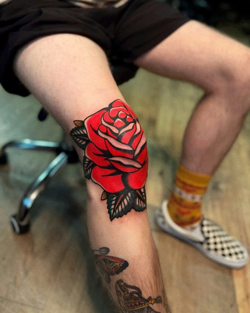 Shin tattoos stand out visually because of their position, often featuring bold imagery that benefits from strong line work.
