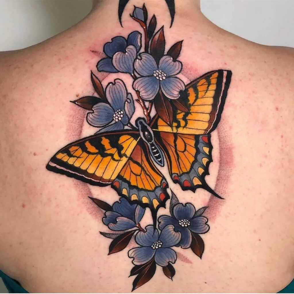 Upper back tattoos often frame the shoulders with wings, florals, or mandalas that stretch across the skin beautifully.