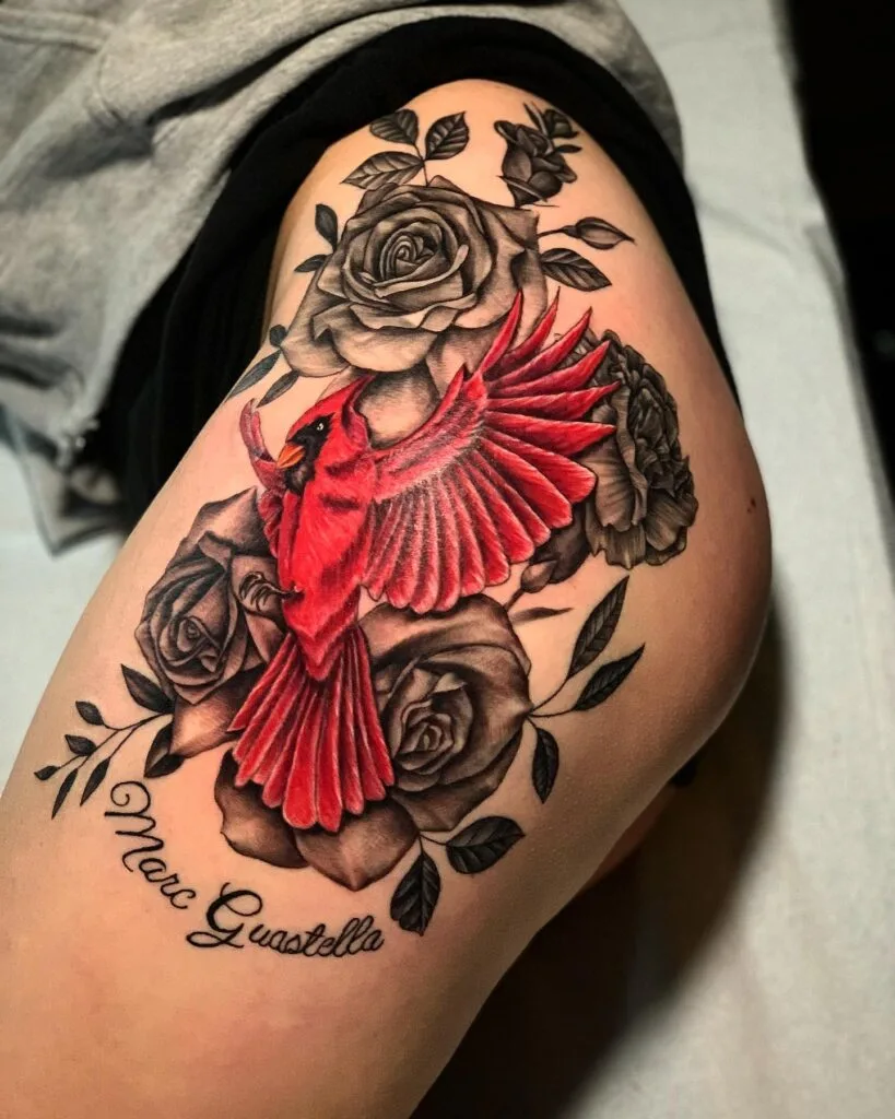 Thigh tattoos provide a broad canvas where large, detailed designs can flourish without feeling compressed or crowded.