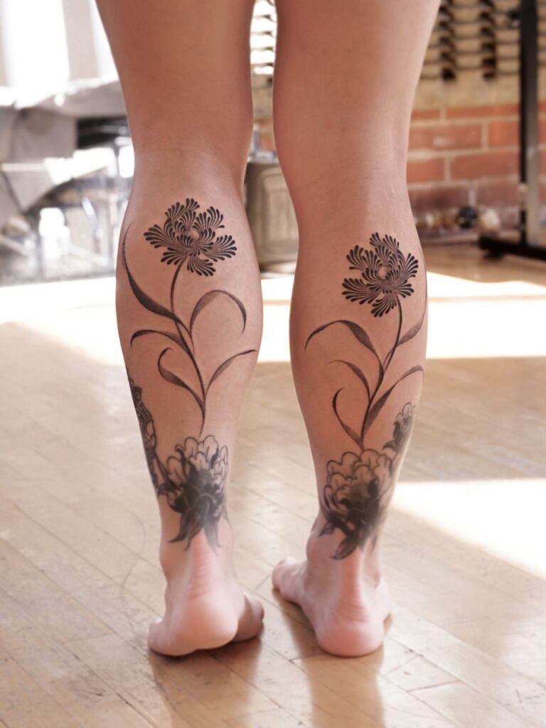 The calves are especially popular for vertical motifs such as totems, blackwork patterns, or detailed illustrative work.