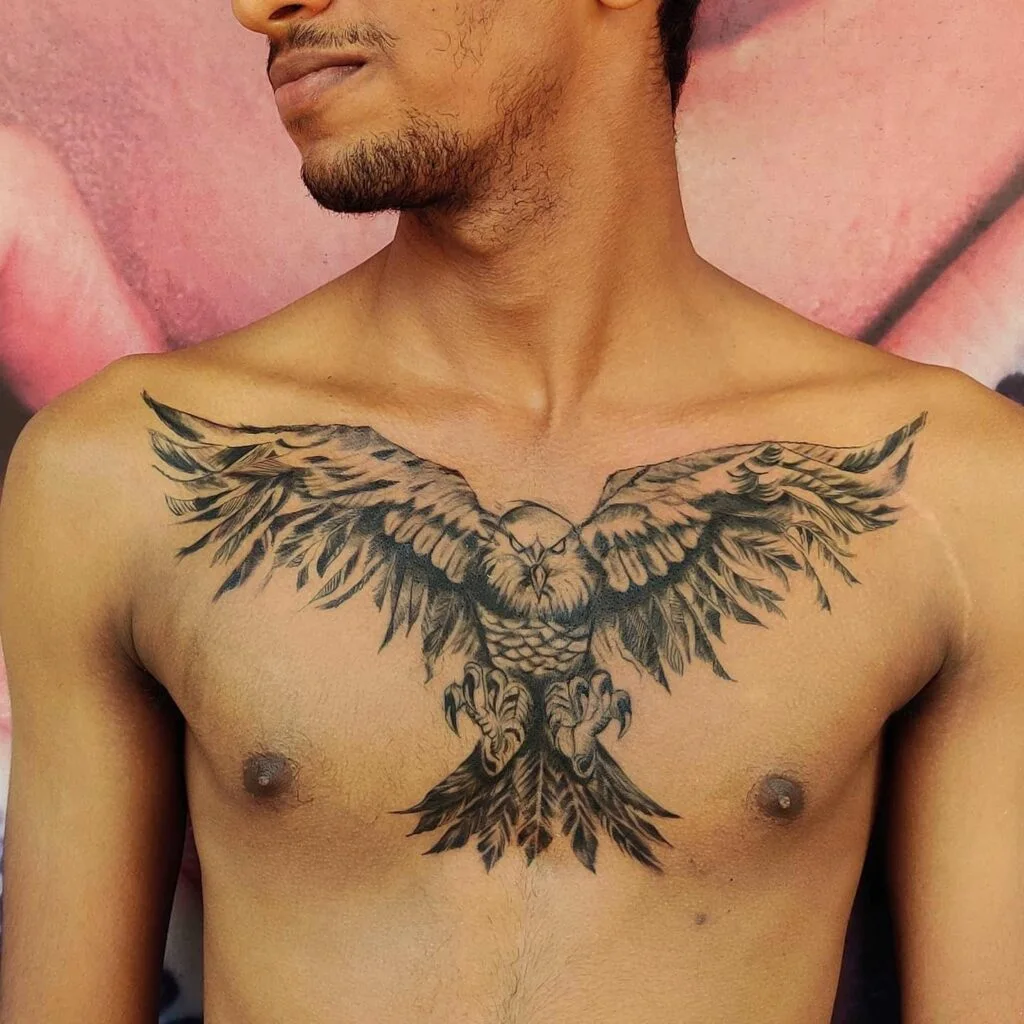 The chest offers one of the broadest surfaces for tattoos, making it ideal for larger, detailed artwork.