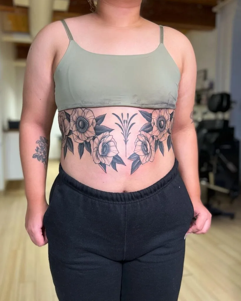 The stomach offers a larger, flat surface that can host symmetrical ornamental tattoos or bold, illustrative artwork. Many people choose tattoos in these areas because they interact closely with natural body contours.