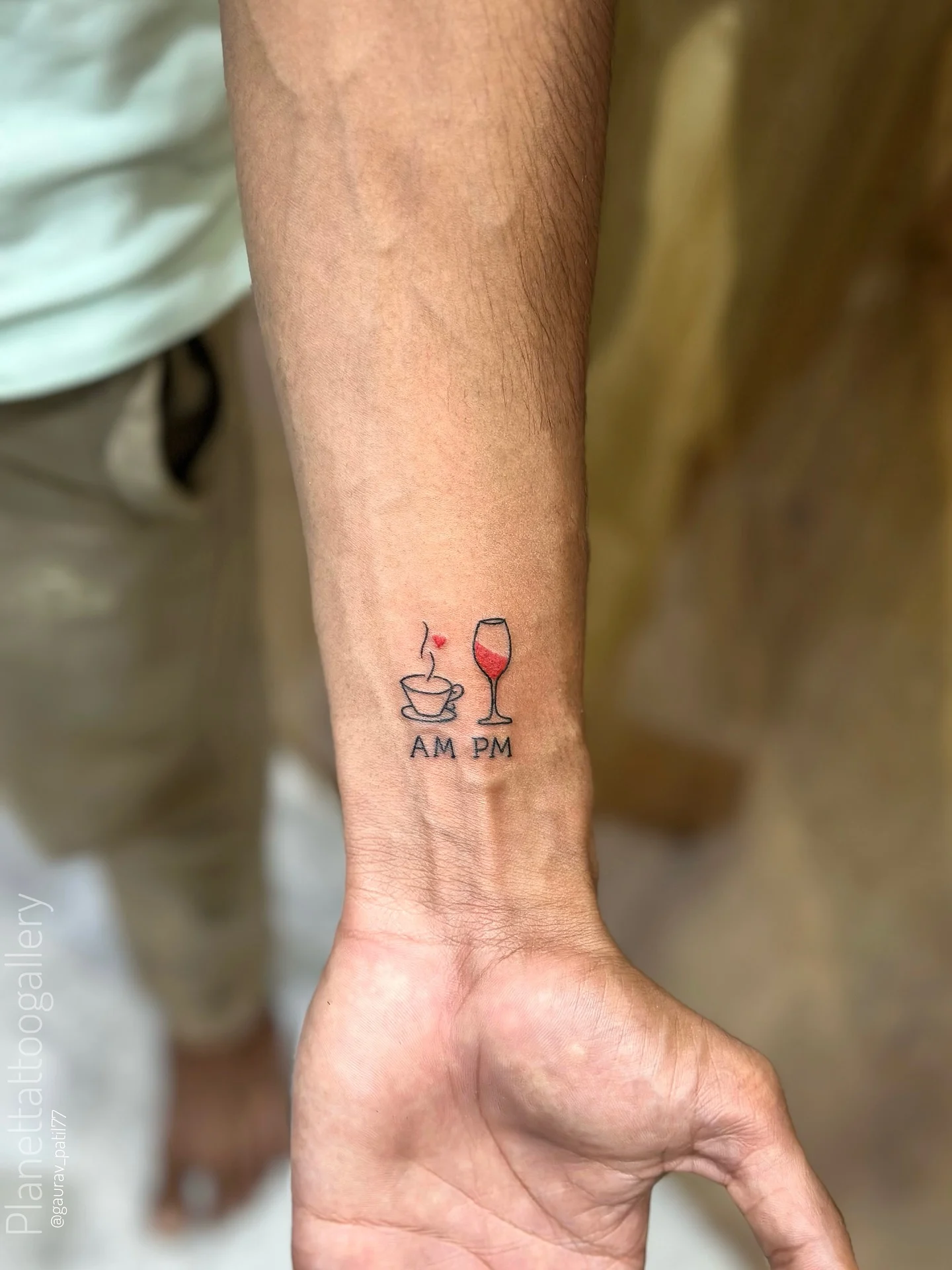 AM PM Coffee and Wine Wrist Tattoo