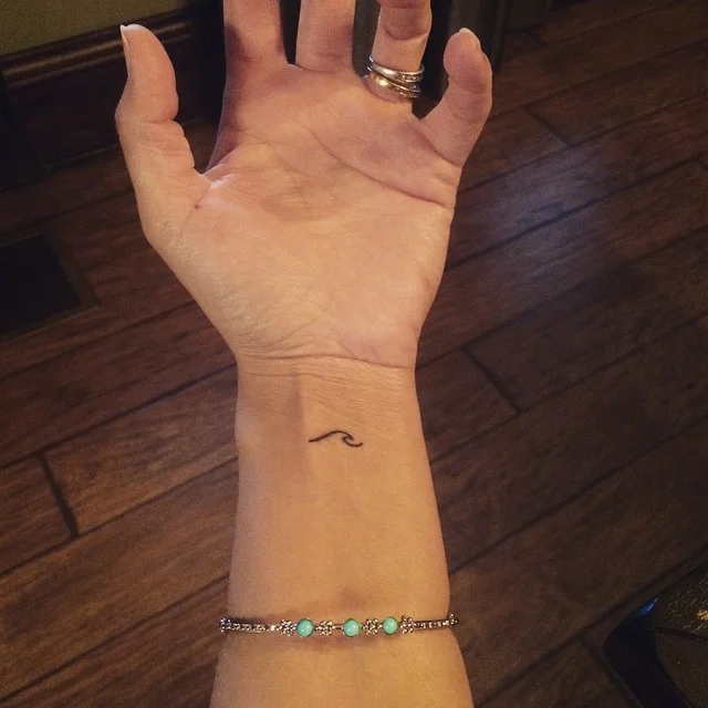 This tiny wave line tattoo rests gently on the inner wrist, offering a soft, minimalist look with quiet meaning.