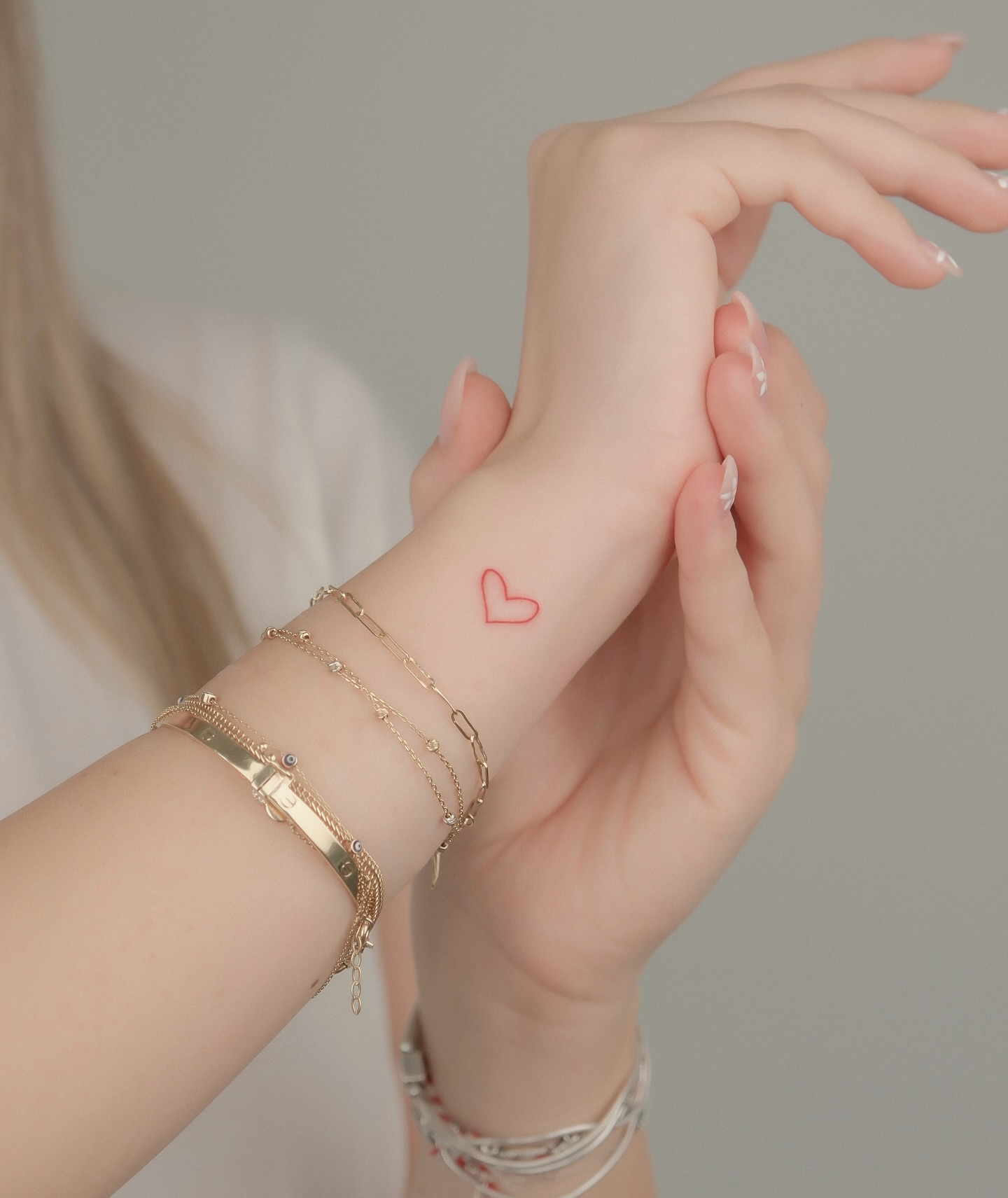 Its small size makes it perfect for a subtle, meaningful design that feels personal and sweet. It pairs beautifully with bracelets and everyday jewelry, adding a quiet romantic touch to the wrist.