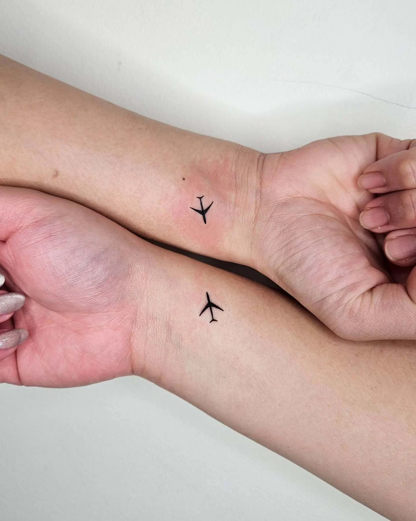 This tiny airplane tattoo sits neatly on the wrist, capturing a sense of travel and freedom in the simplest way.