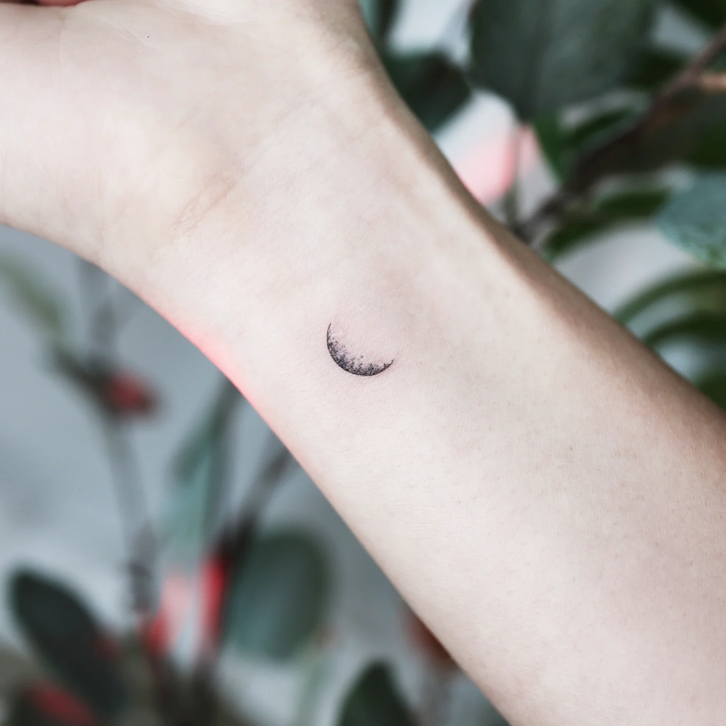 Tiny Crescent Moon Wrist Tattoo