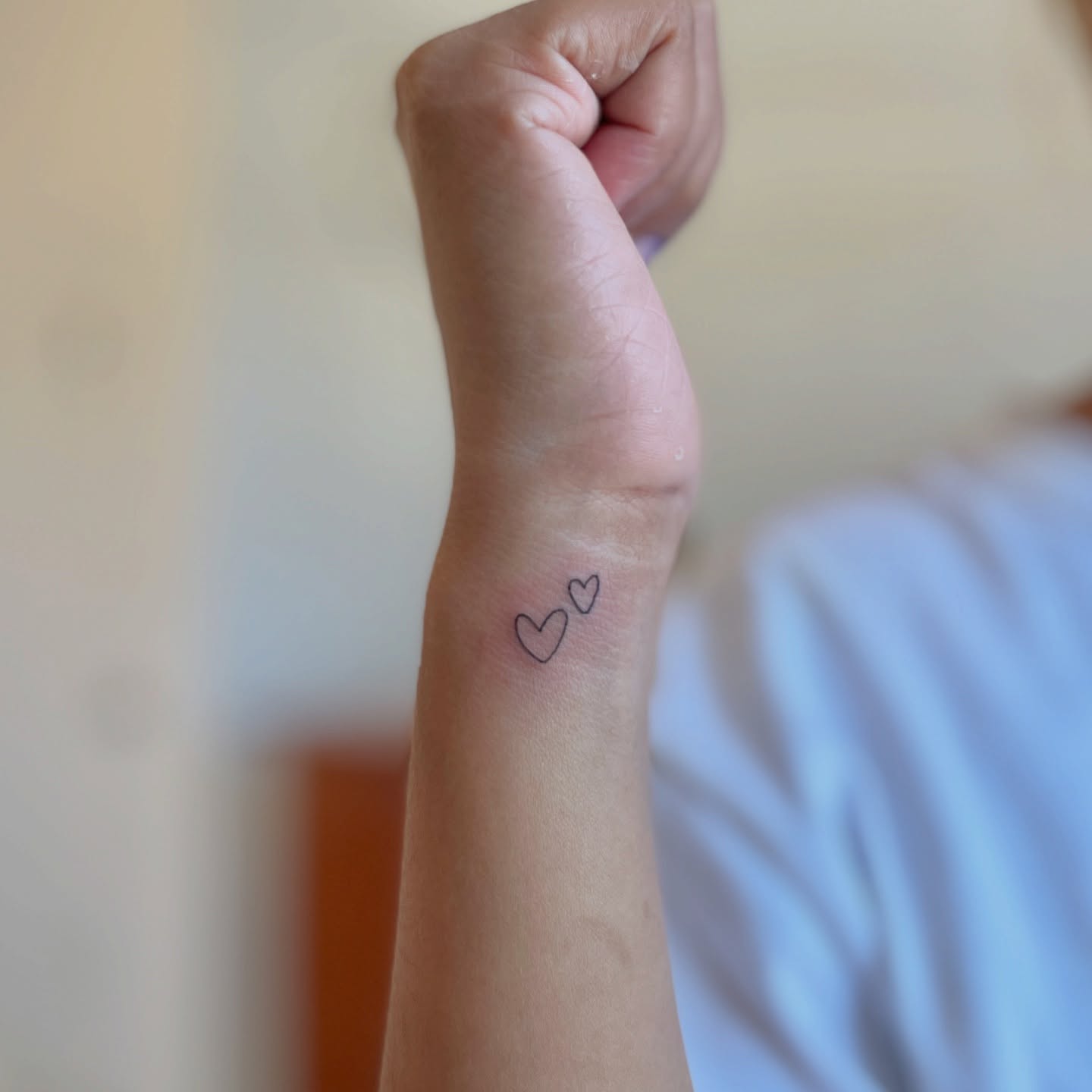 Tiny Double Heart Wrist Tattoo