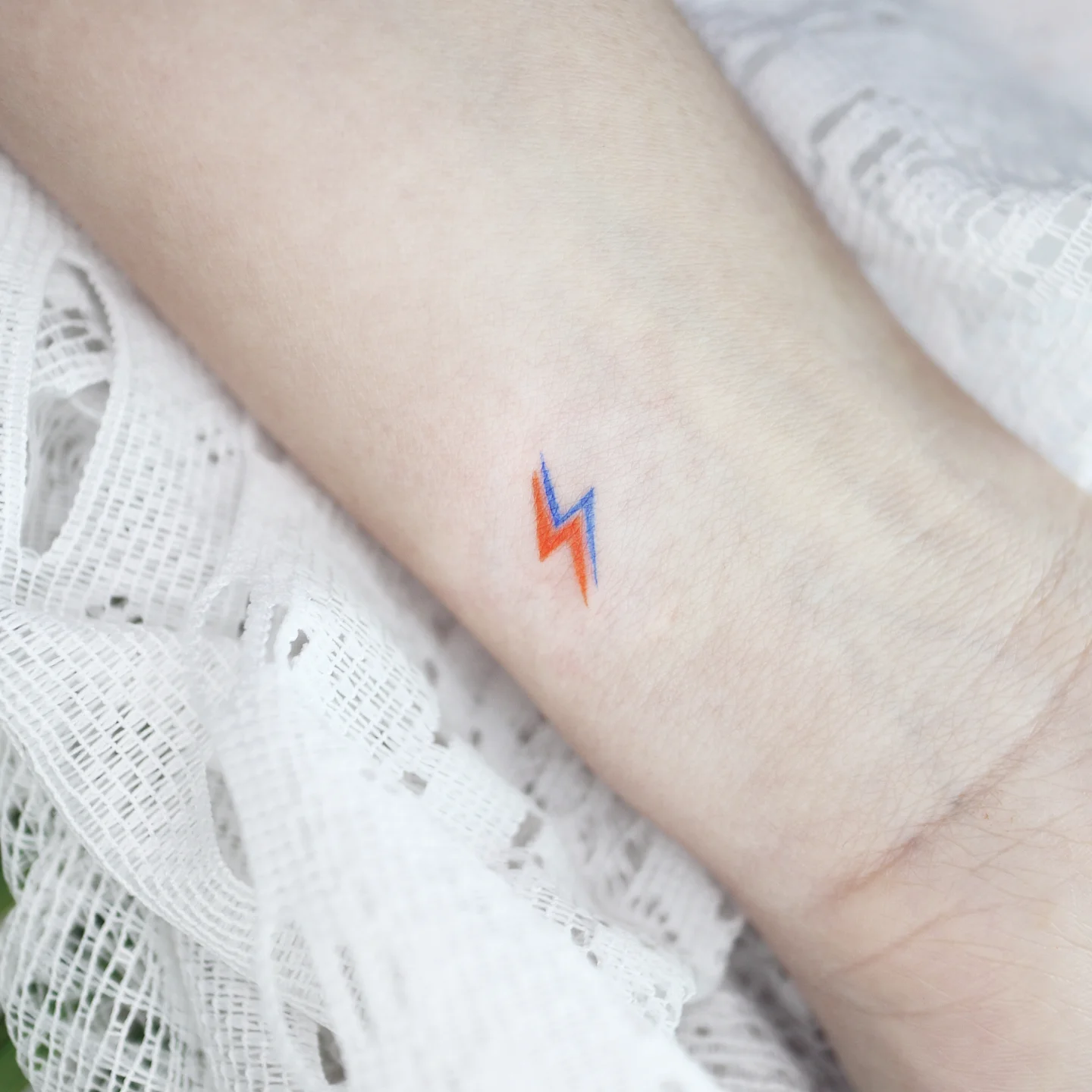 Tiny Dual Color Lightning Bolt Wrist Tattoo