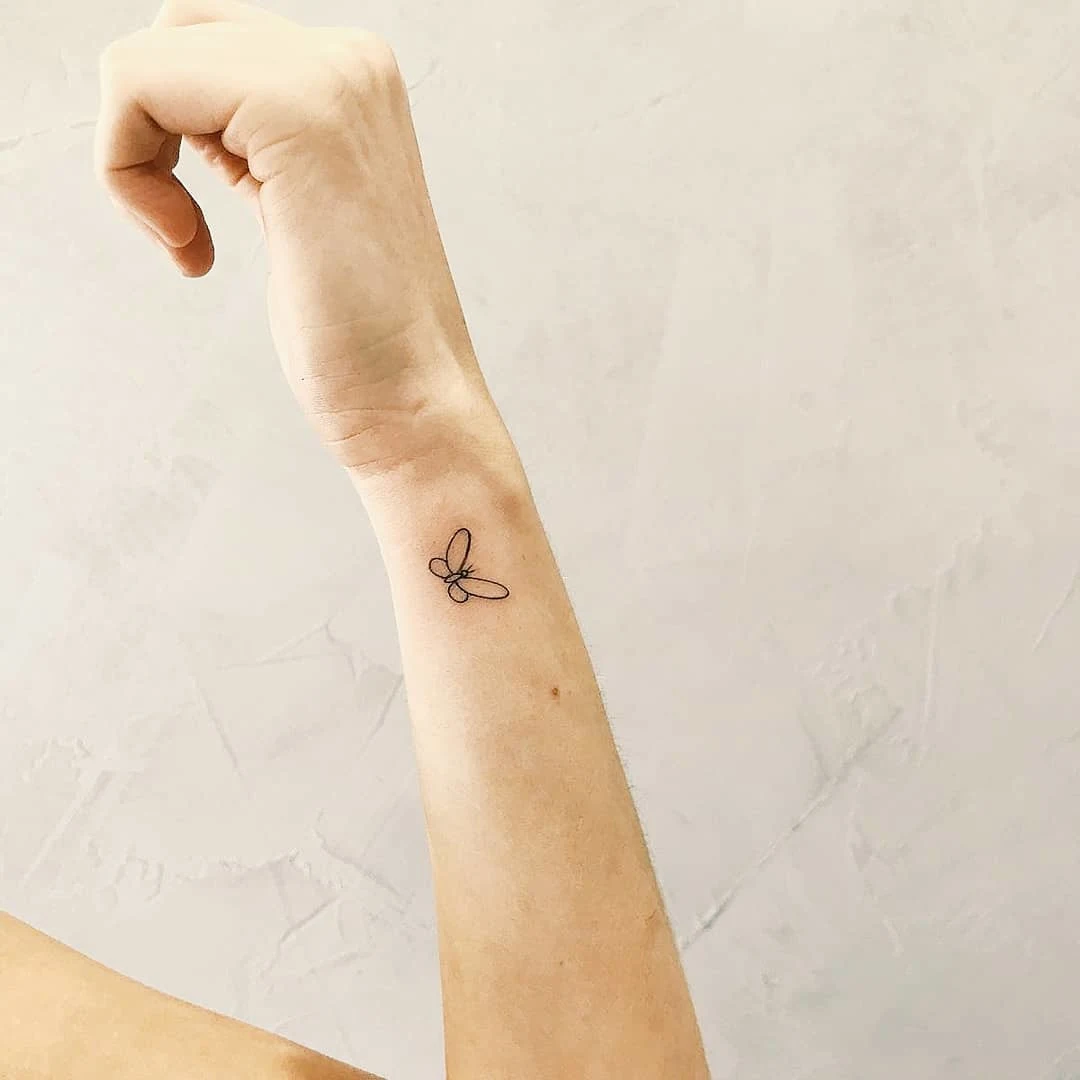 Tiny Linework Butterfly Wrist Tattoo