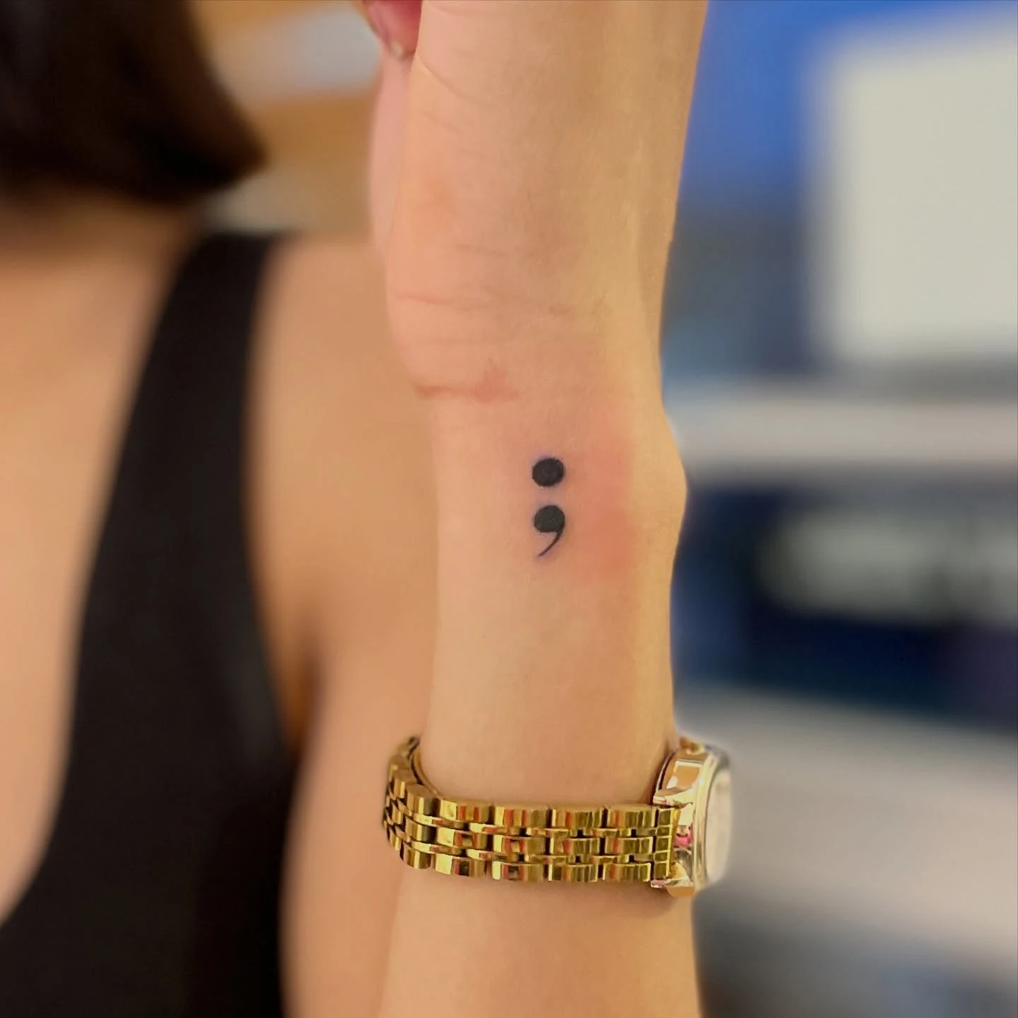 Tiny Semicolon Wrist Tattoo