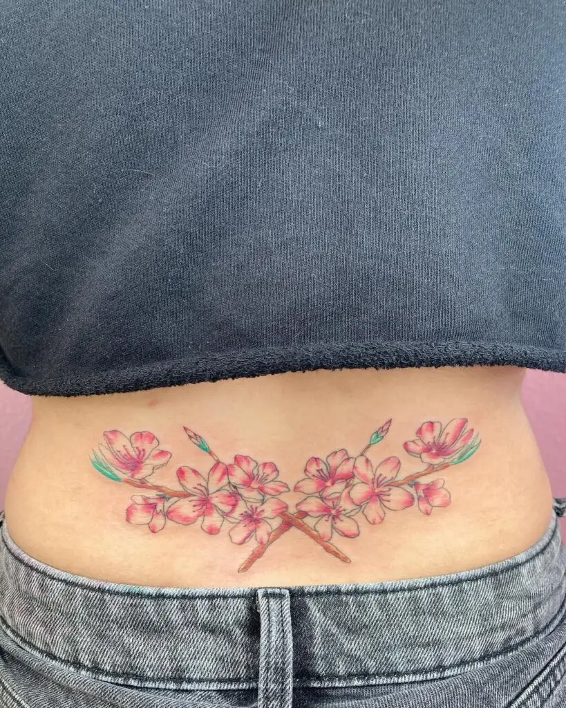 Cherry Blossom Branches Lower Back Tattoo