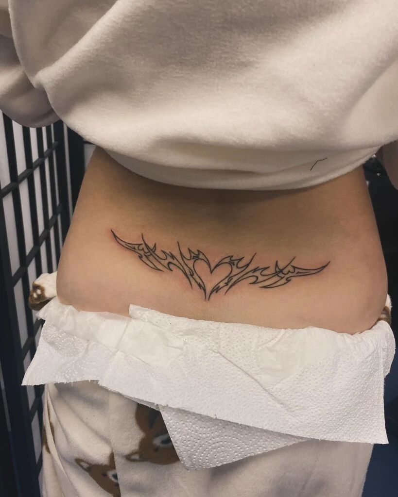 Fine Line Tribal Heart Lower Back Tattoo