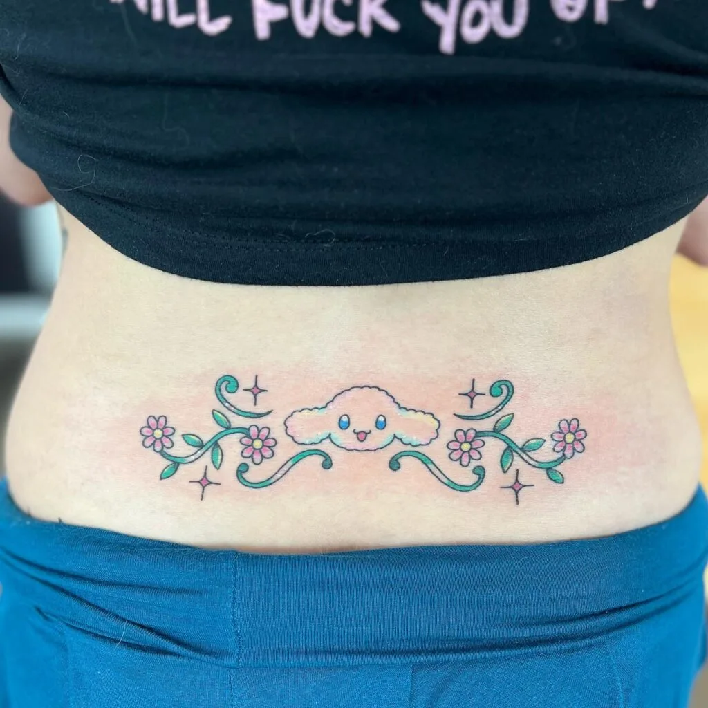 Floral Cinnamoroll Lower Back Tattoo