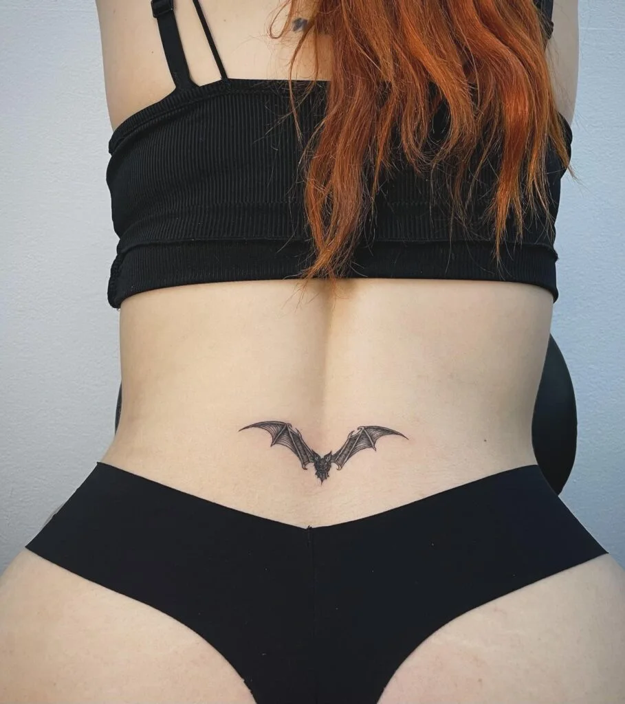 Minimalist Bat Lower Back Tattoo