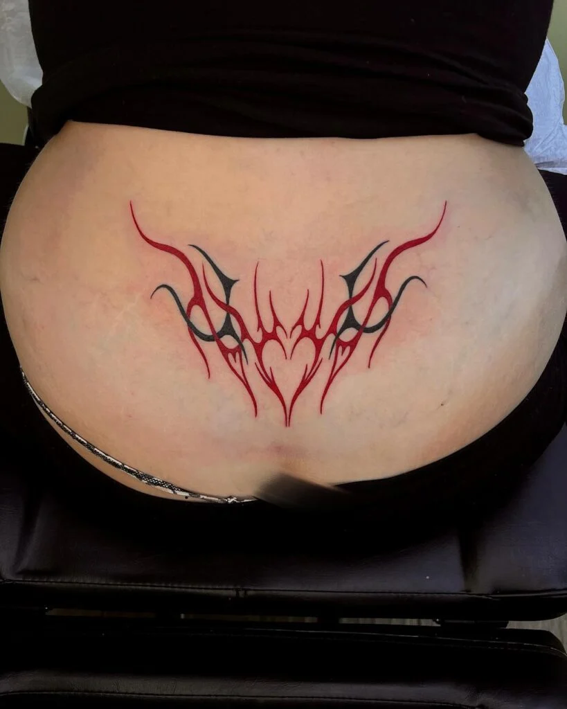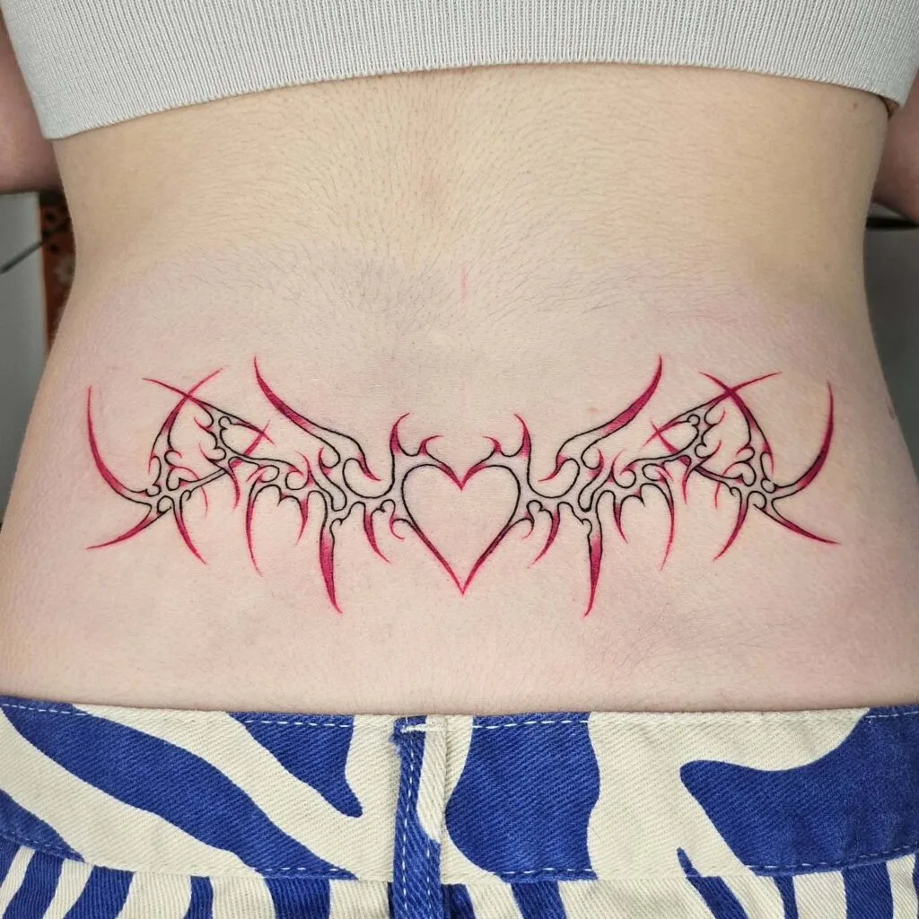 Red Tribal Heart Lower Back Tattoo