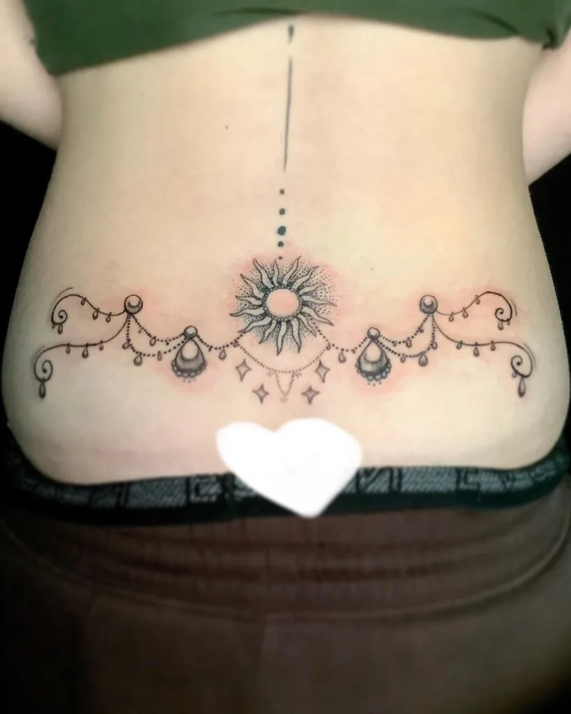 Sun and Ornamental Chains Lower Back Tattoo